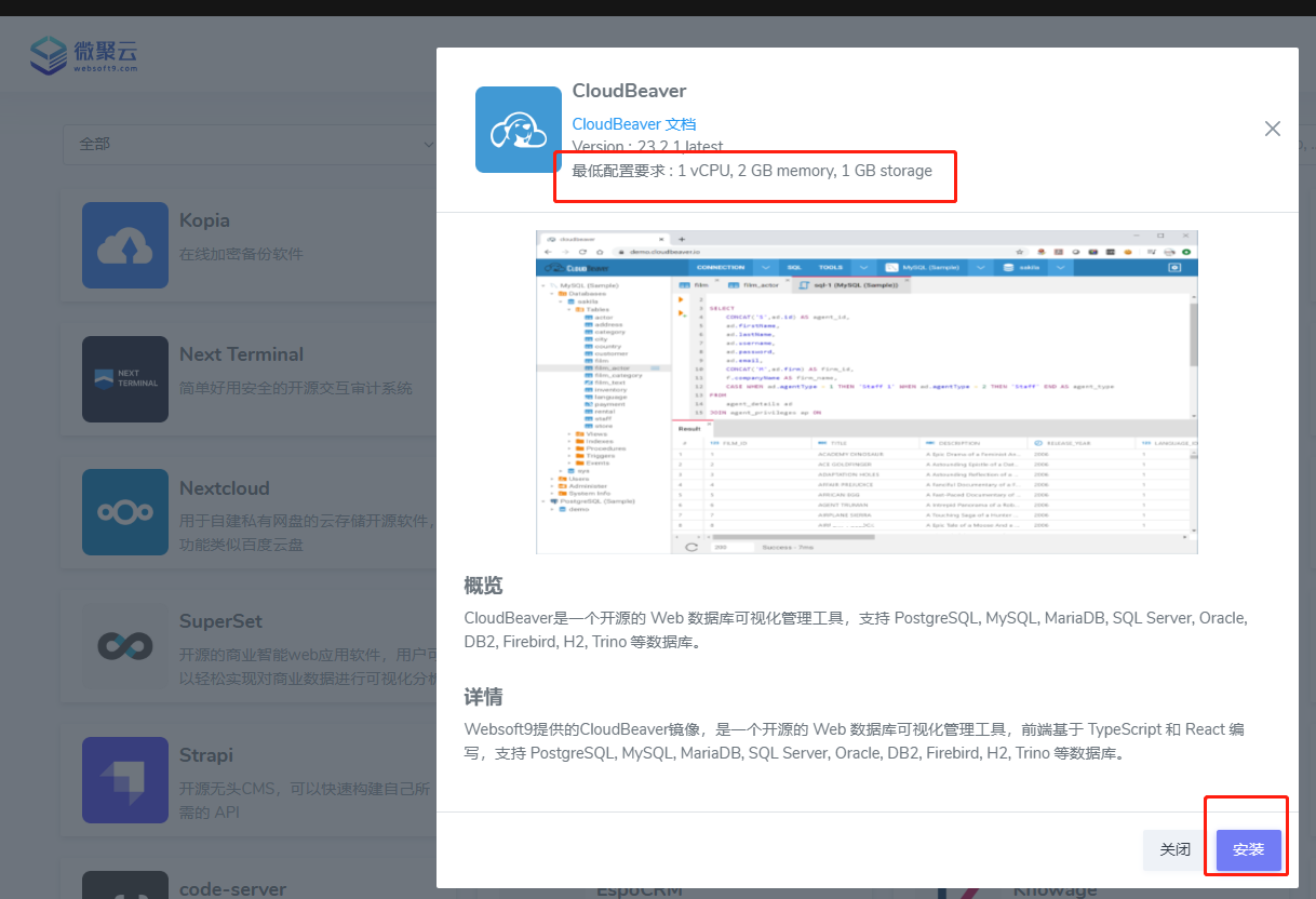 登录 Websoft9 控制台,搜索 Websoft9 模板化应用