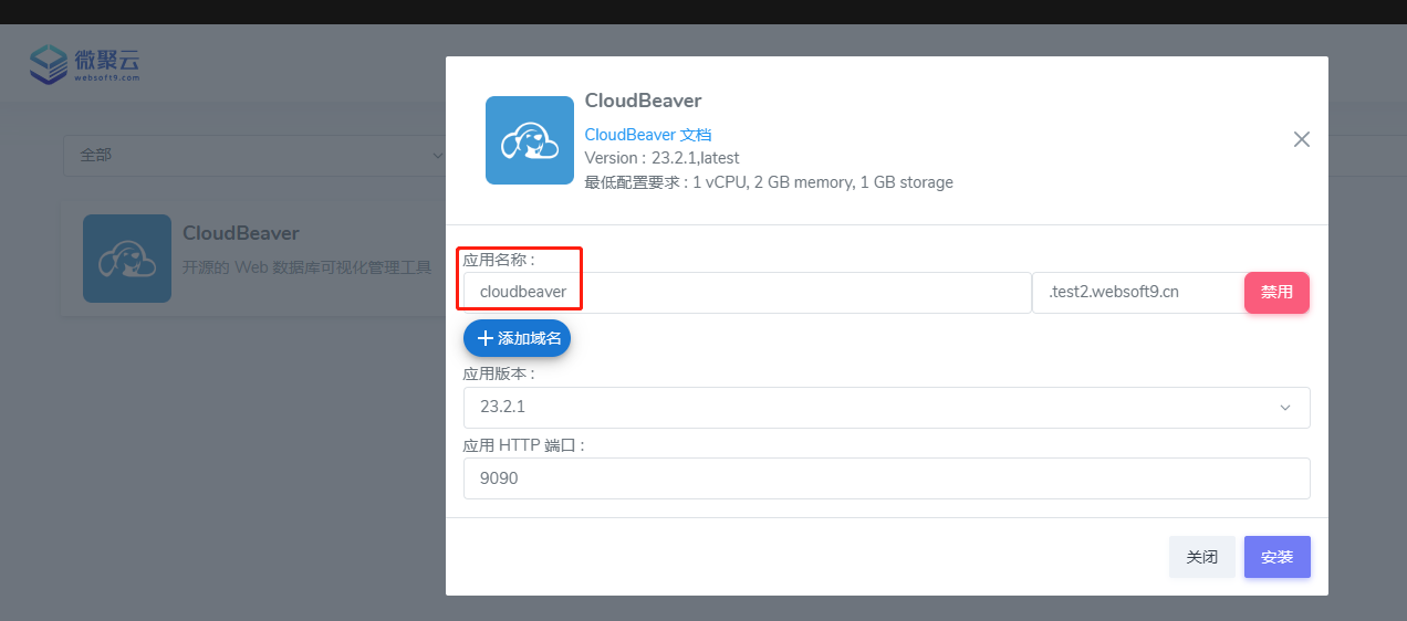 - 域名:若已提前配置全局域名此处会自动产生的子域名(可禁用),也支持额外增加域名