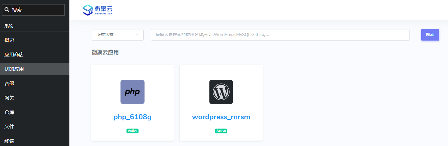 通过 Websoft9 应用商店 部署模板化的应用是最简单的部署方式,它支持 WordPress, ONLYOFFICE, Odoo, GitLab, Teamcity, AITable, MySQL, Moodle, Zentao 等 200+ 个热门应用。