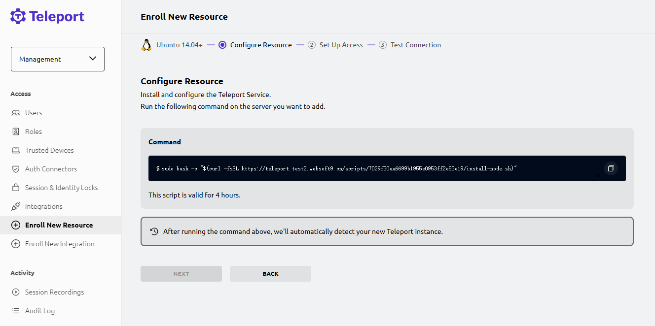 登录到 Teleport 控制台,Resource > Enroll New Resource