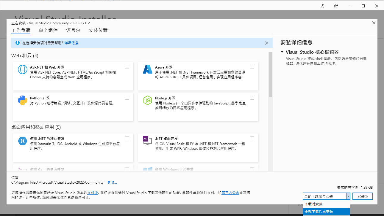 在 Windows 下安装 Visual Studio 是非常方便的,因为官方提供了安全管理器。